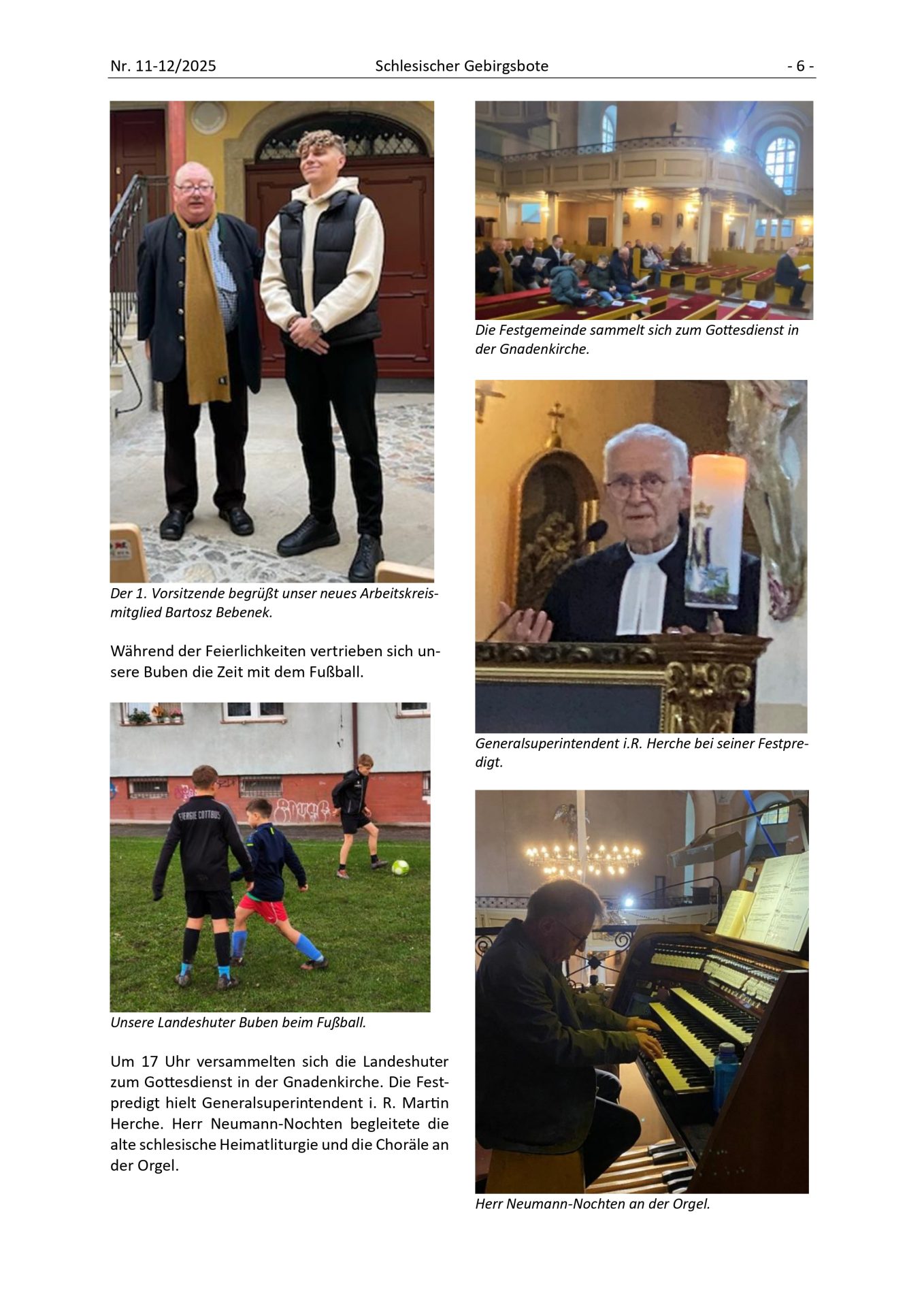Mit einem festlichen ökumenischen Gottesdienst in der Landeshuter Gnadenkirche beging der Arbeitskreis am 10. Oktober 2020 deren 300. Kirchweihjubiläum. Die Festpredigt hielt der Vorsitzende der Gemeinschaft evangelischer Schlesier, Generalsuperintendent em. Martin Herche. Der Festgottesdienst ging in ein Konzert der Filharmonia Sudecka aus Waldenburg mit Stücken für Sopran und Tenor über.