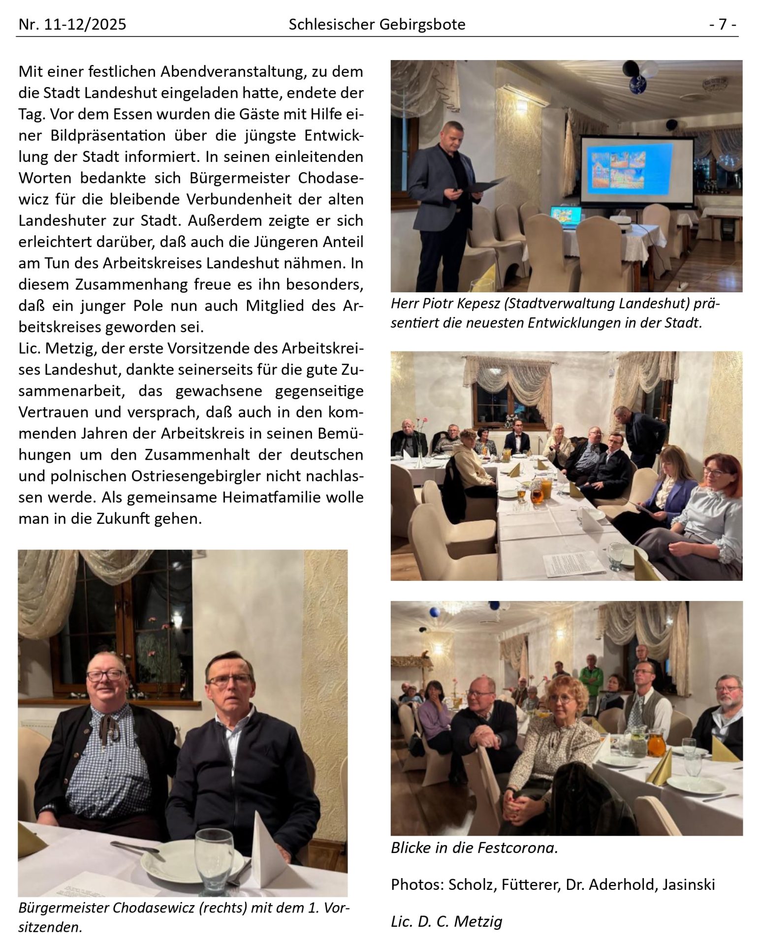 Auf der Arbeitskreissitzung konstituierte sich der Vorstand neu und ein neues Ehrenmitglied wurde ernannt. Mit Gästen der Langhans-Gesellschaft Berlin konnten beim Bürgermeister Chodasewicz die Vorbereitungen zur in Landeshut geplanten Langhans-Dauerausstellung besprochen werden.